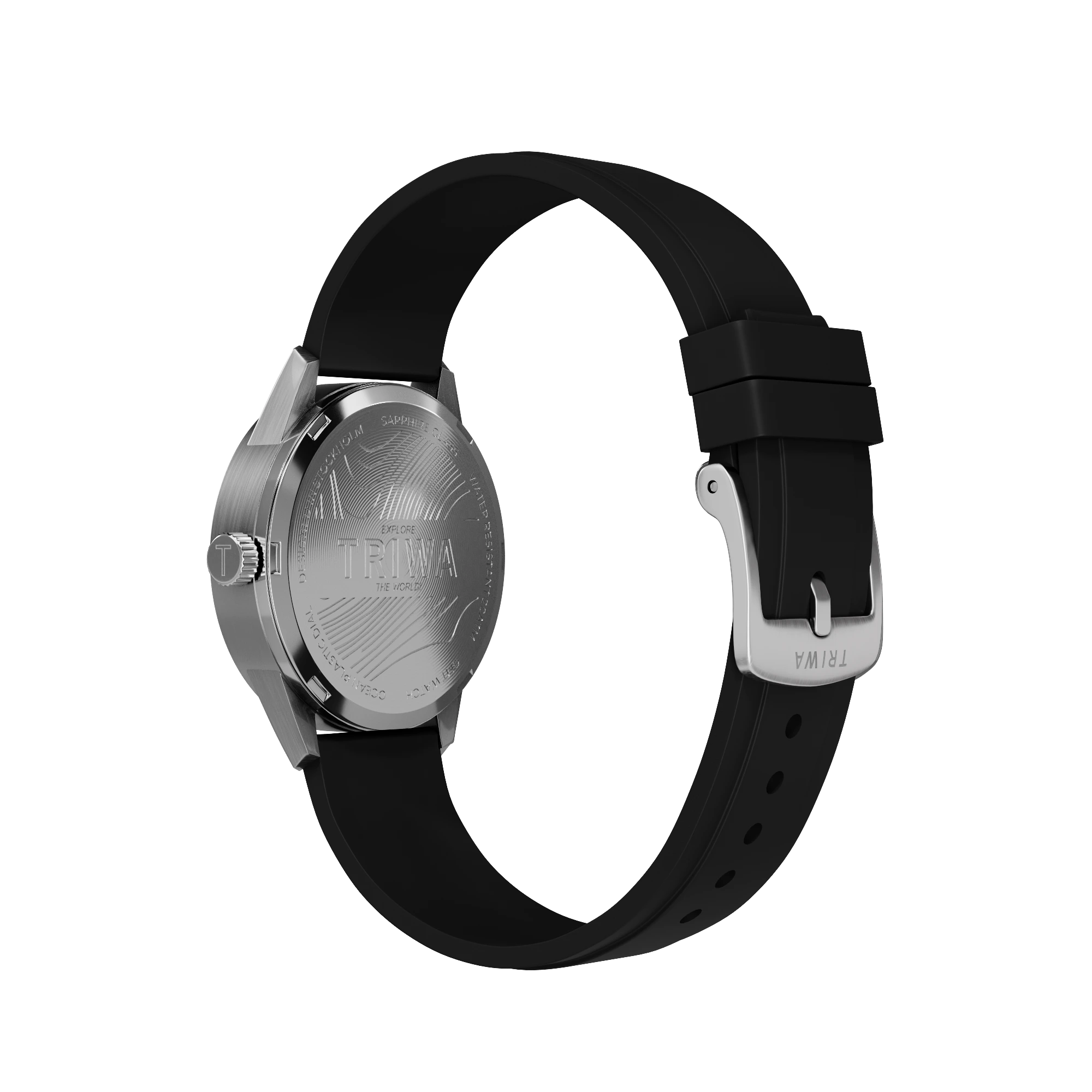 The heart of this watch is a dial crafted from recycled plastic, salvaged directly from coastlines before entering the sea. The velvety, matte finish of this reclaimed material creates a one-of-a-kind texture that dramatically enhances the dial's sculpted 3D wave pattern.