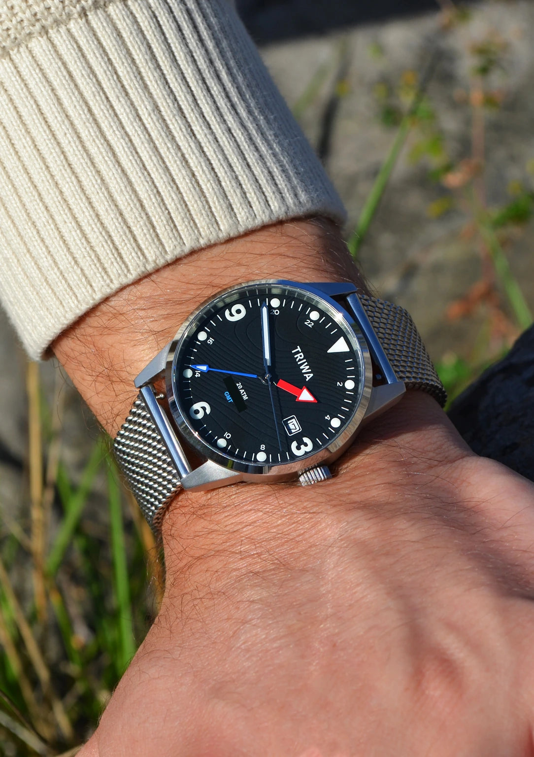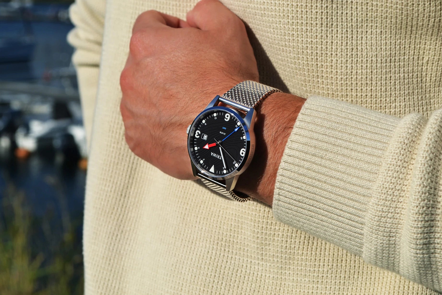 The 39mm, 20 ATM, stainless steel case features a sleek Swedish design, blending brushed steel with bright, polished sections. This contrast creates a lively, yet refined look and complements the classic lugs phenomenally.