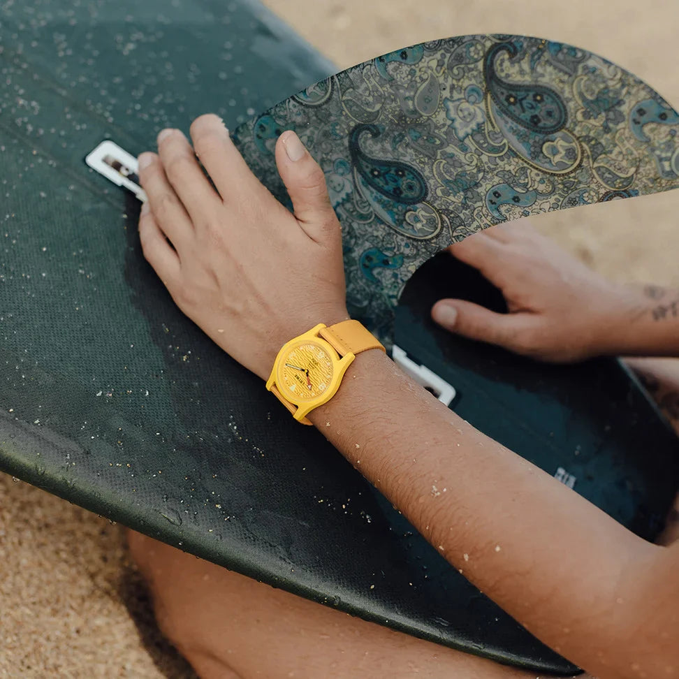 This yellow eco-friendly watch makes you look like the kind of person who knows what they're doing—even if you're just out for coffee. The polished 3D wave dial evokes the ocean’s depths, while its durable design and 10 ATM water resistance make it ideal for city life or seaside escapes. Its bold, yellow silhouette fits seamlessly with both formal wear and casual looks.