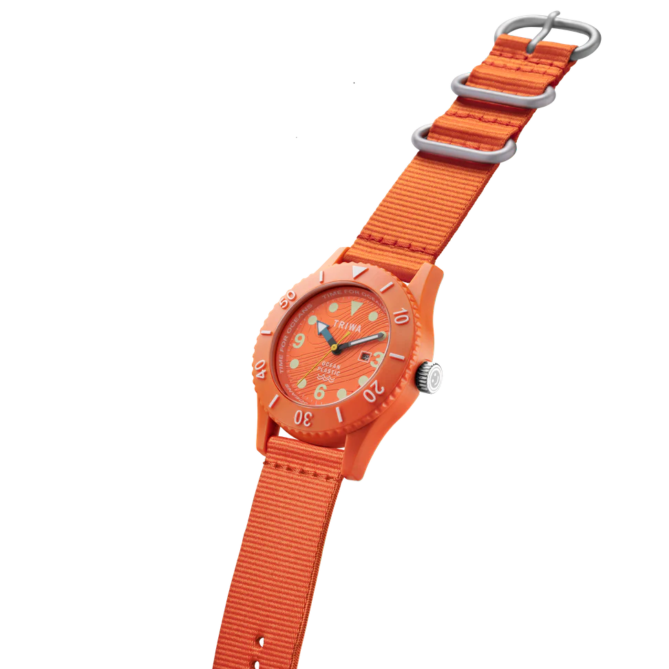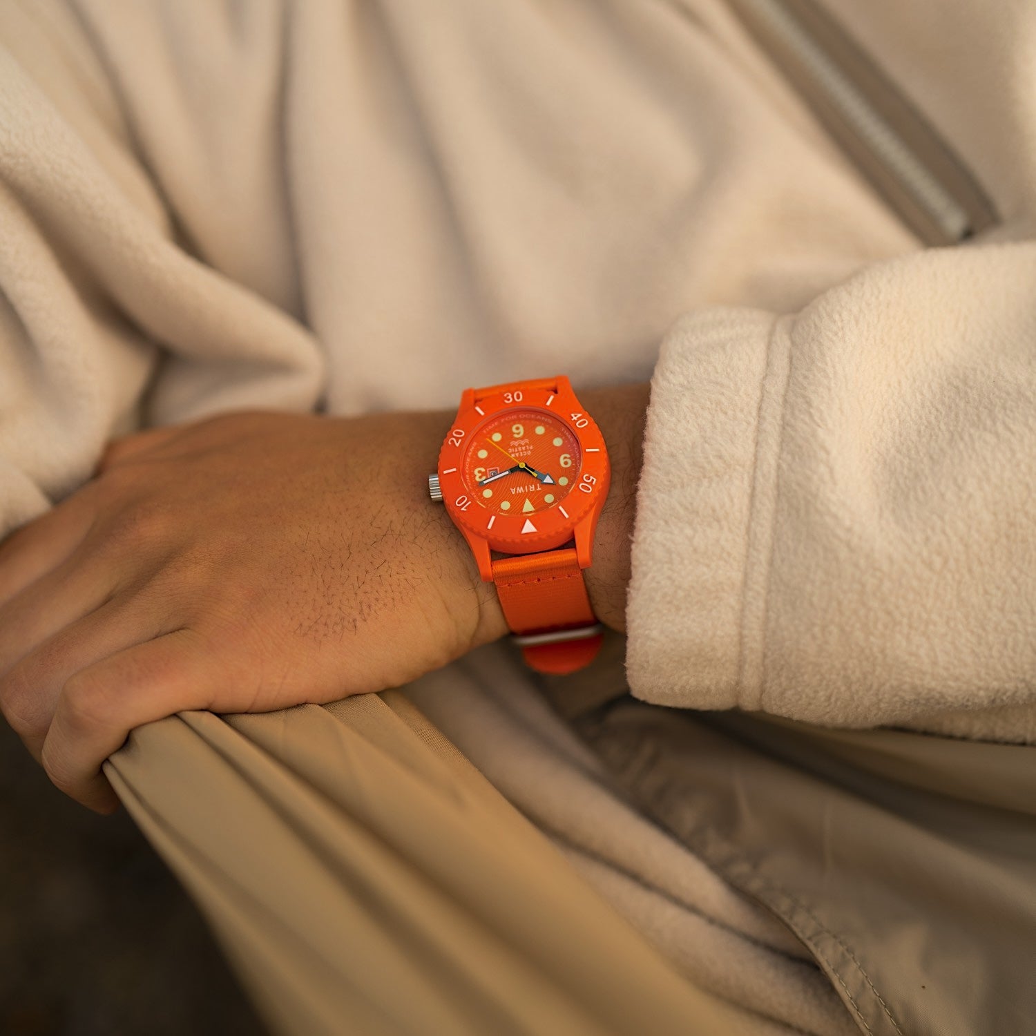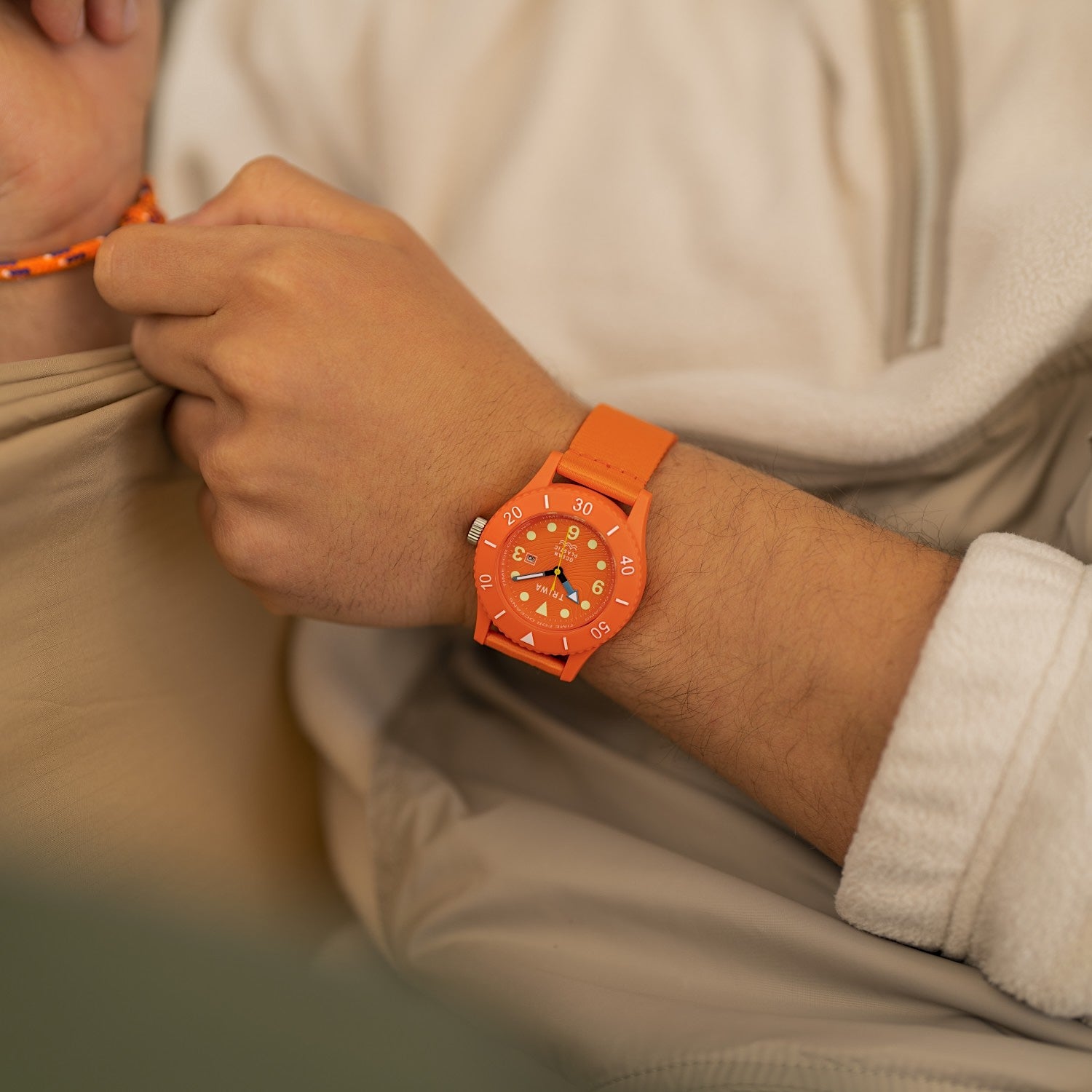 With a vibrant orange, a 3D wave-pattern dial, luminous indexes, rotating bezel, and 10 ATM water resistance, it’s made for underwater adventures—and everyday inspiration. Sleek, durable, and unmistakably cool—it’s a daily reminder that style and sustainability can dive hand-in-hand. Oh, and it looks just as good with a wetsuit as it does with your weekend fit. Go ahead—make waves.